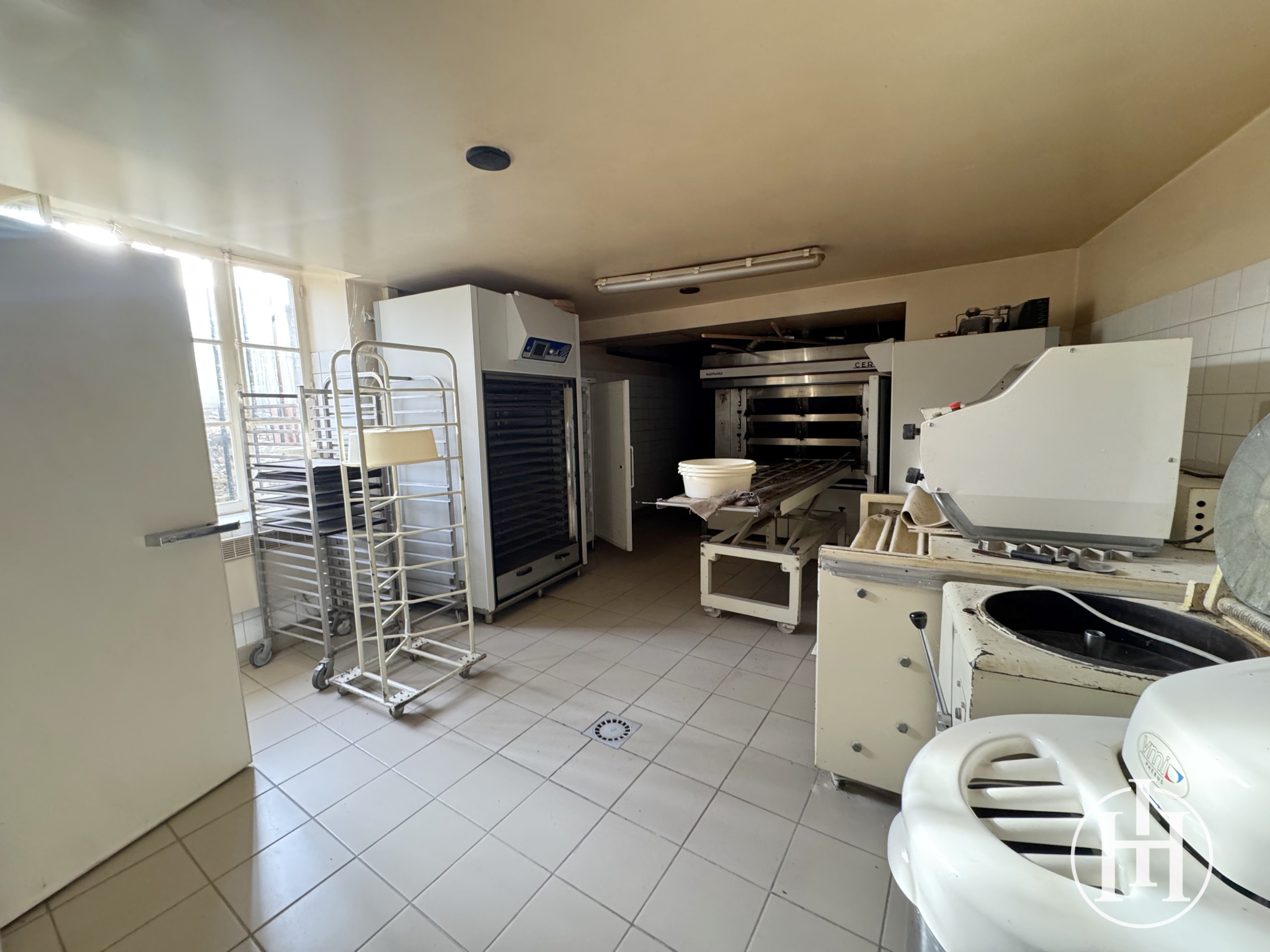 Ce bien comprend un local commercial équipé de tout le matériel de boulangerie, un laboratoire, un appartement d’environ 140 m² à rafraîchir, ainsi qu’un grenier offrant la possibilité d’être aménagé.