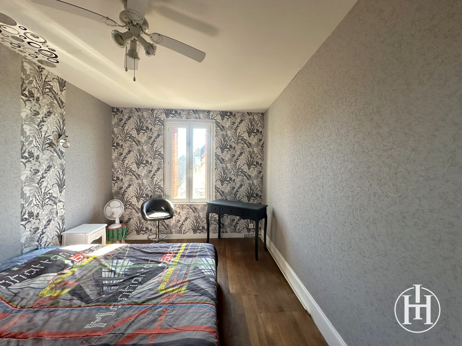 À l'étage, un palier dessert quatre grandes chambres d'environ 14m2 chacune ainsi qu'une salle de bain avec baignoire, douche et WC.